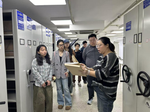 在档案查阅大厅,姜娜老师以实物展示与讲解相结合的方式,向同学们介绍了档案的定义、种类,介绍了从档案材料的收集、整理、分类、鉴定、组卷到入库的完整流程。随后,学生们分组走进档案库房和数字化加工间,近距离观察档案排架、电子扫描等工序。不少同学第一次看到合校前的纸质档案、老地图等原件档案,纷纷发出惊叹。